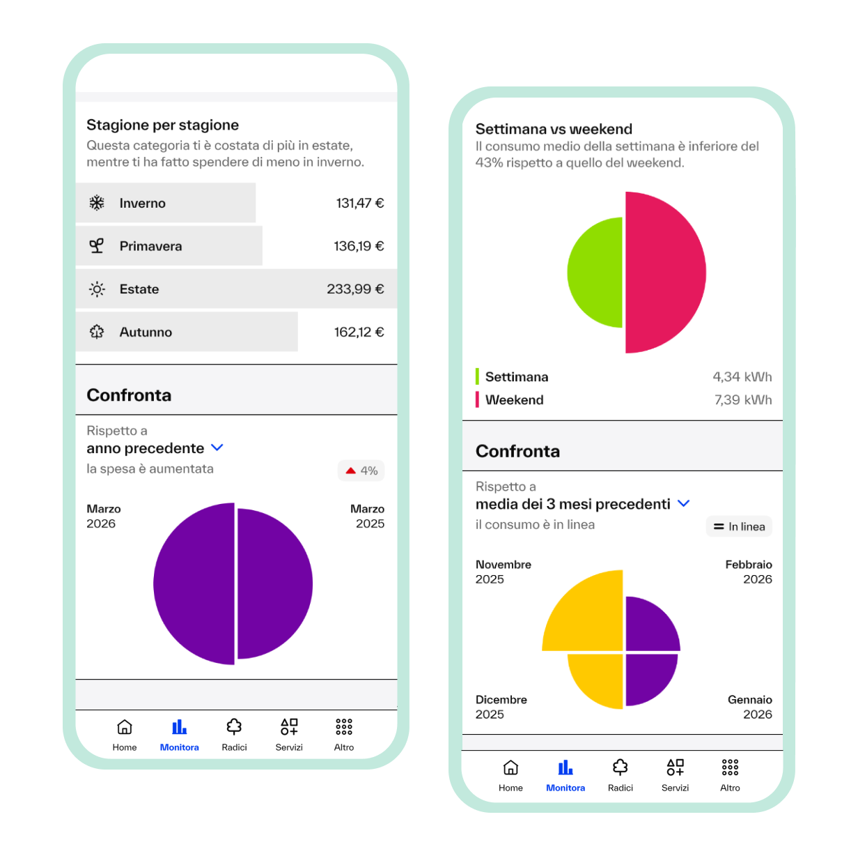 In questo momento non abbiamo altri servizi che tengono d'occhio i tuoi consumi, purtroppo. Quando il tuo contatore verrà sostituito, però - e sta succedendo in tutta Italia - ti diremo quando potrai attivare anche le Basi.